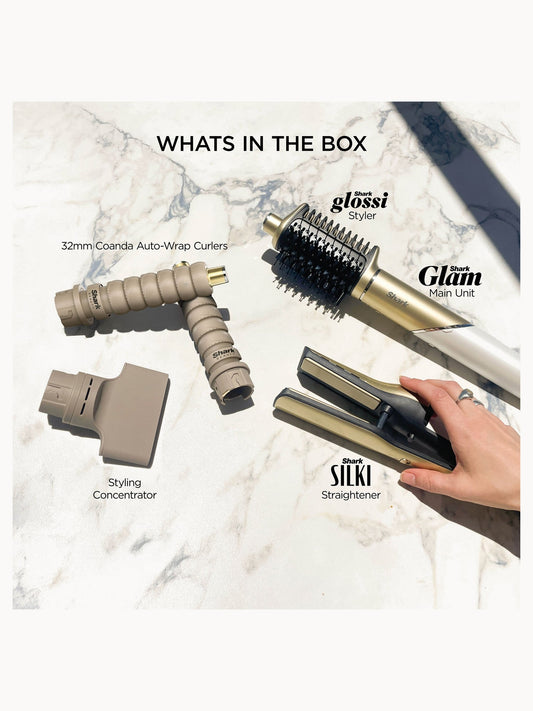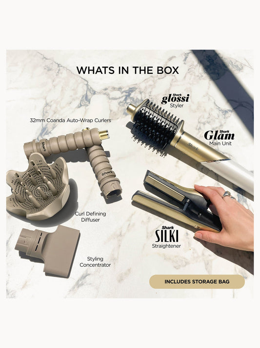 Glam 5-in-1 Hot Tool Air Styling + Drying System Gold - For Straight, Sleek, Wavy and Bouncy Styles