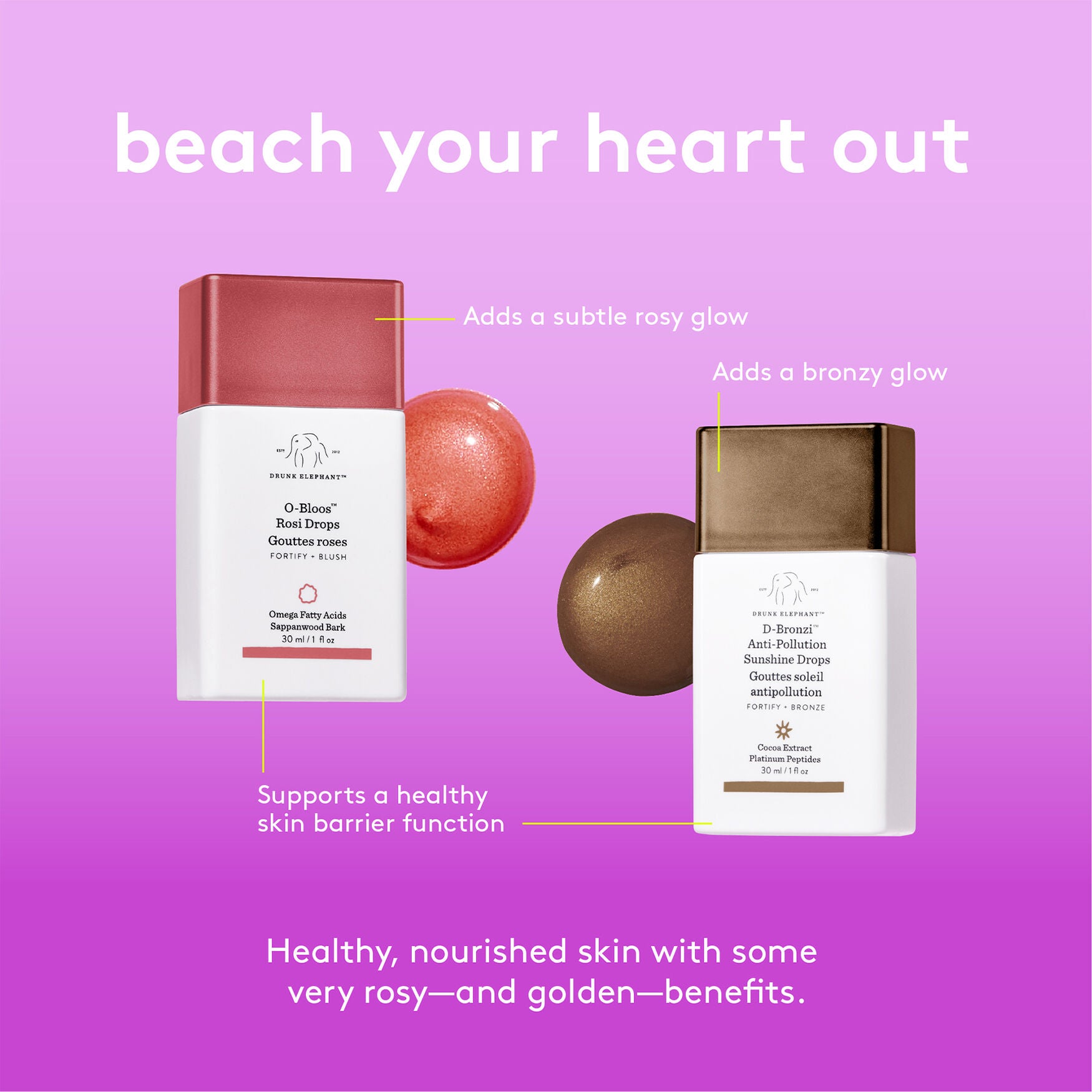 What are Drunk Elephant bronzing drops used for? Well, these multitasking drops can be mixed with your serum, face oil, moisturiser and foundation, as well as your body cream, for a natural-looking, head-to-toe glow.