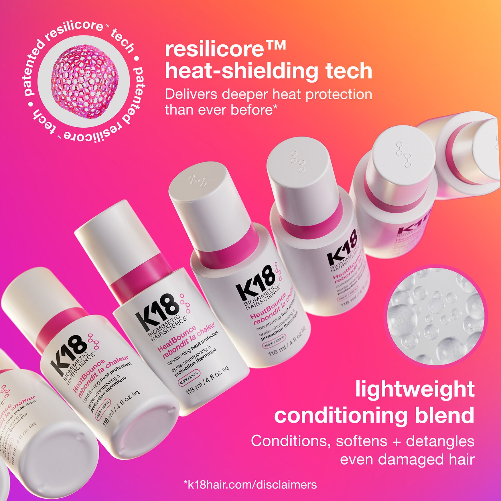 Minimise hair breakage with the K18 HeatBounce Conditioning Heat Protectant, a heat protectant that works to protect hair against heat damage up to 232°C (450°F). Helping to maintain hair health, this heat protectant contributes to hair that looks its best.