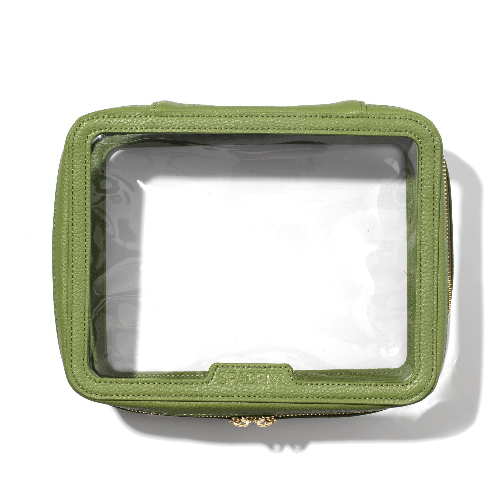 Both practical and attractive, the Space NK Travel Bag features faux leather accents on the top, bottom and back panel, with a clear PVC panel to the front and back. Inside, the back panel is made of faux suede and features polyester bindings.