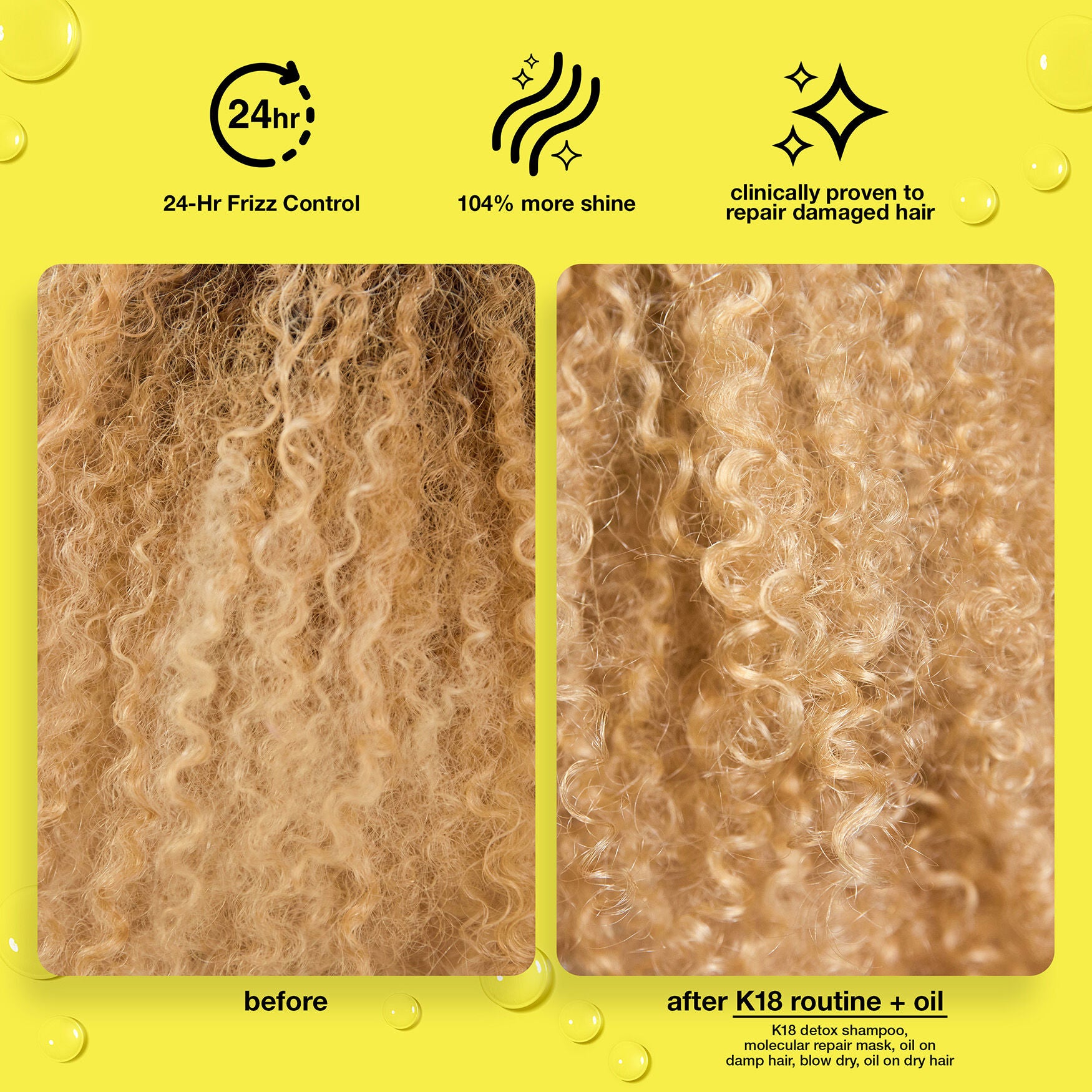 Strengthen the hair with the K18 Molecular Hair Repair Oil, a silicone-free hair oil to help leave the hair smoother and more manageable.
