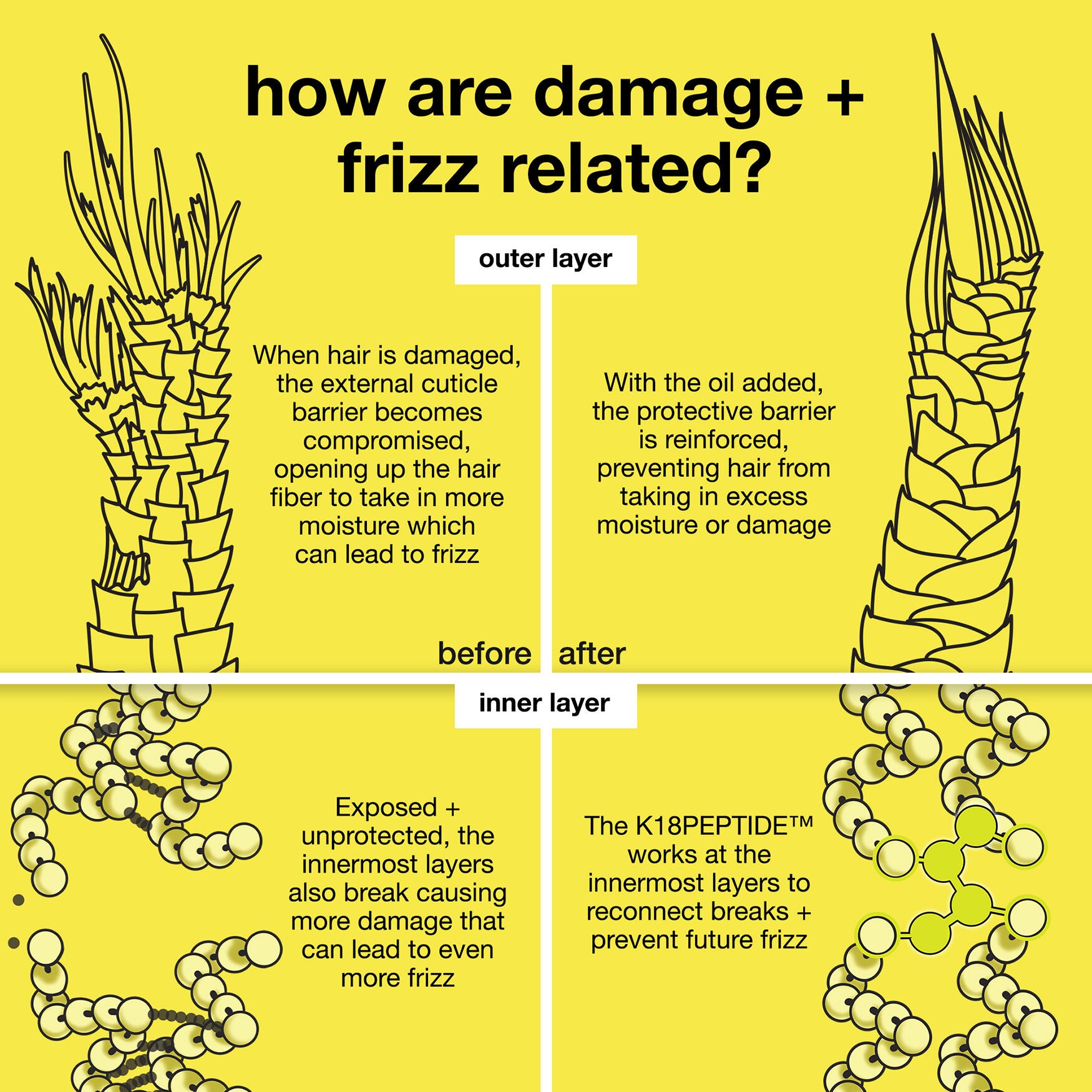 Designed to deliver cutting-edge haircare, this weightless oil has been biotech-engineered to strengthen the hair at two levels of the hair fibre. Using the K18PEPTIDE™, it works to tackle the deeper-level damage that can cause frizz for a smoother, sleeker appearance.