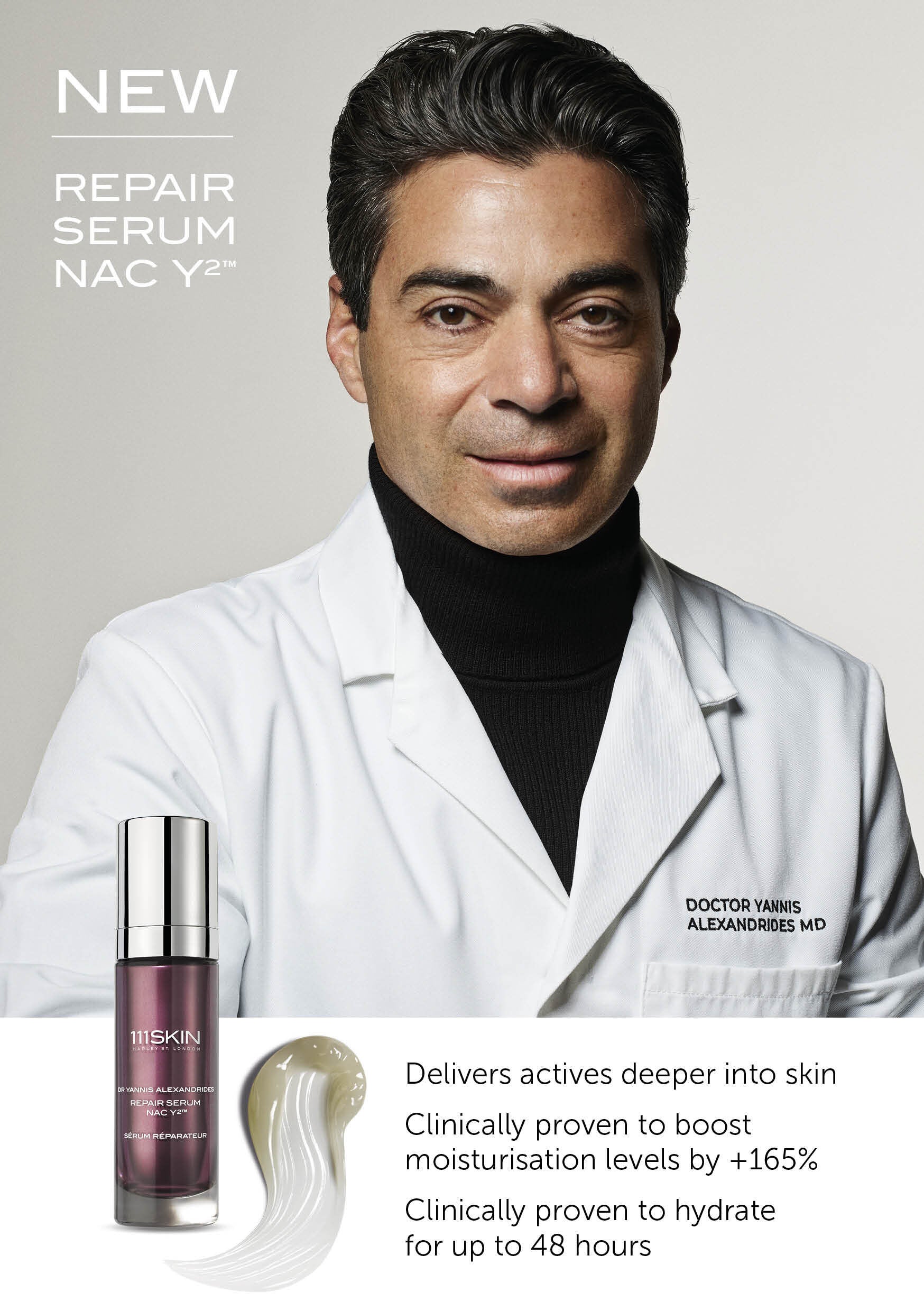 Working to future-proof the complexion, 111Skin Repair Serum NAC Y2 is a skincare product created by Dr Yannis Alexandrides that absorbs easily into the skin.