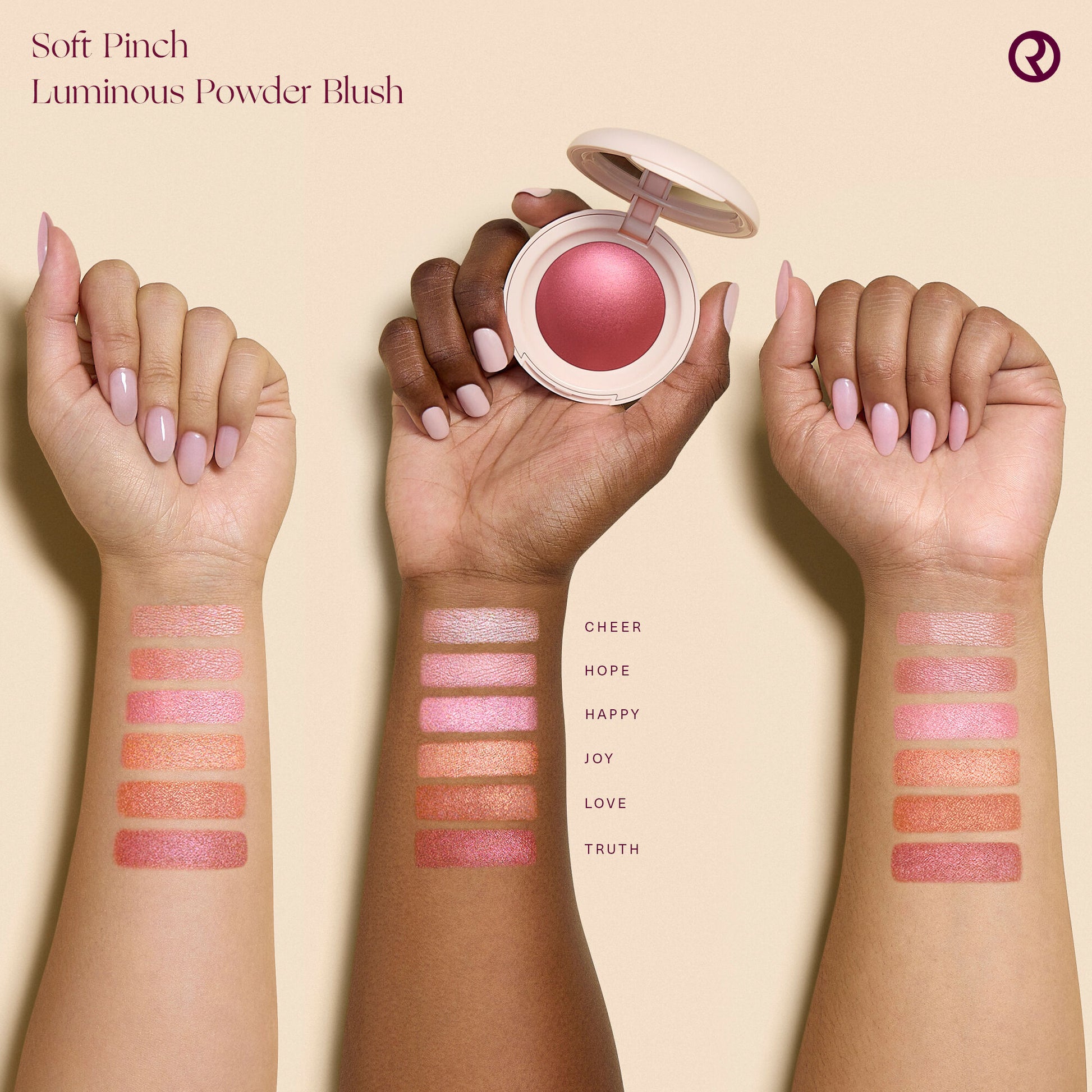 Apply Rare Beauty Soft Pinch Luminous Powder Blush with the Soft Pinch Blush Brush onto the cheeks for a beautiful, luminous look. Build colour with circular movements if a softer look is desired, available in 6 glowy shades.